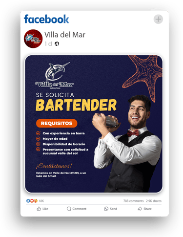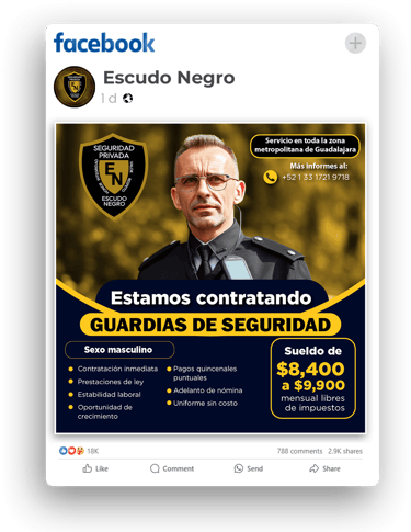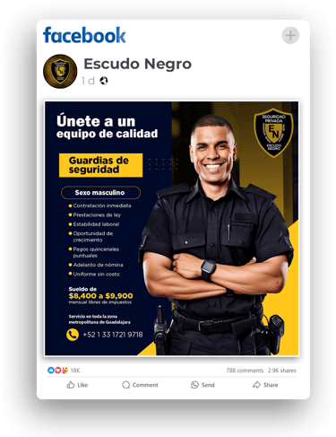 Aprovechamos la inteligencia del algoritmo de Facebook para segmentar con exactitud, llegando a personas que demuestran interés en el puesto o que poseen un alto potencial de permanencia laboral.